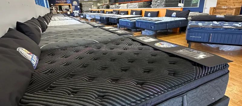 Sleep Station Mattress is your source for NAME BRAND closeout mattresses up to 75% off regular retail prices. Other retailer’s loss is your gain. Our closeout mattresses consist of discontinued lines, floor models, scratch and dent, and customer exchanges. All closeout bedding is inspected for structural defects and sanitized per State law. Although closeout mattresses and box springs do not carry a manufacturer’s warranty, Sleep Station stands behind every closeout mattress set we sell with a one-year store warranty.